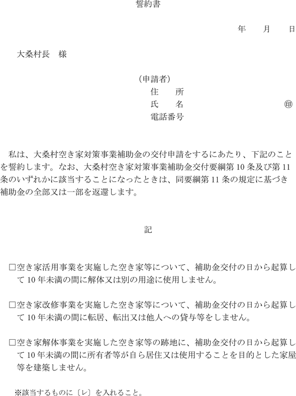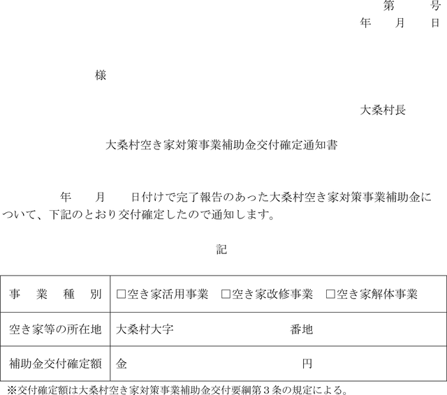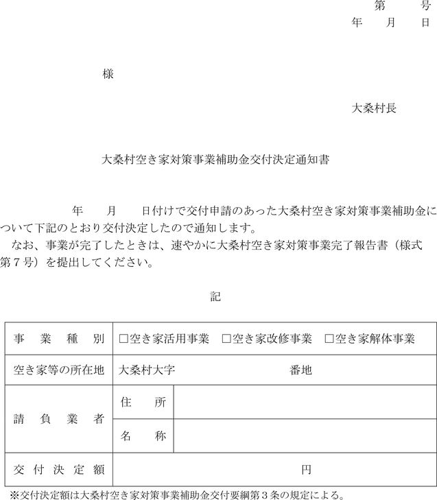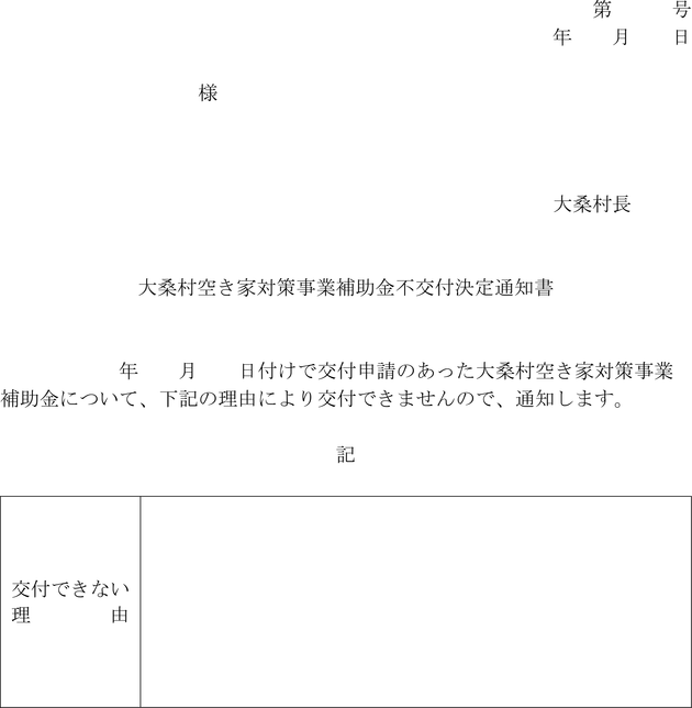 様式第4号)又は大桑村住宅空き家対策事業補助金不交付決定通知書(
